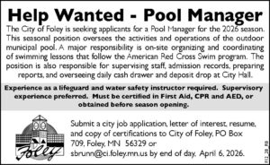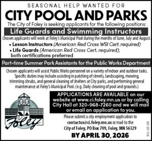 For more information: Please contact Foley City Hall at 320-968-7260.